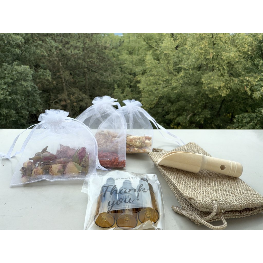 - 3 průhledný sáček se sušenými květy/bylinkami (podle zvolené varianty)